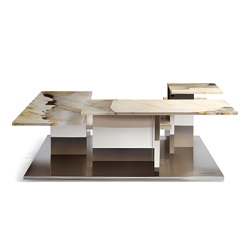 Natural Pandora luxury stone coffee table irregular shaped high-end stainless steel metal living roo