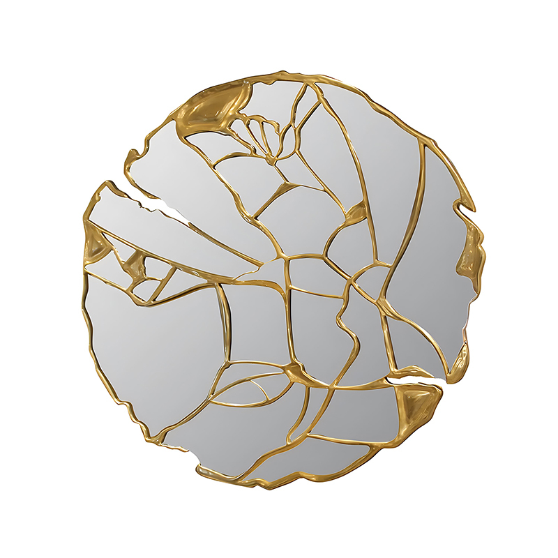 Light luxury art round wall decorative mirror hanging wall mirror hotel villa living room entrance w
